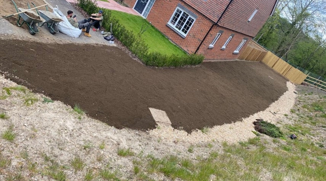 Premium grade top soil will be added on top of the soil, providing fresh and clean soil which encourages the turf to bed successfully. This will then be levelled out and compacted, displaying the final finished turf height.